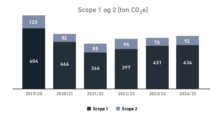 The emission factors (location- and market based) for electricity is from Klimakompasset. The emission factor for the latest year is typically not yet available when we finish our carbon accounting, and therefore the emission factor for the previous year is used, until the latest value is available.